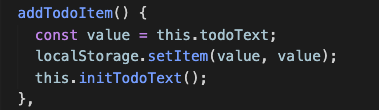 ▲ addTodoItem()에 들어있는 value=todoText는 ▼storage에서 사용된다.